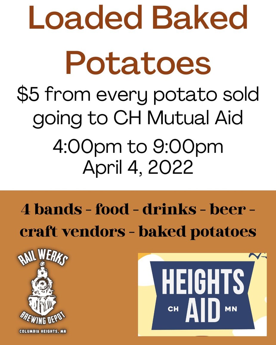 🥔 Loaded Baked Potatoes for a Cause Come hungry—because for every loaded baked potato sold, Rail Werks Brewing Depot donate $5 to support those affected. Yes, it’s delicious. Yes, it helps your community.
